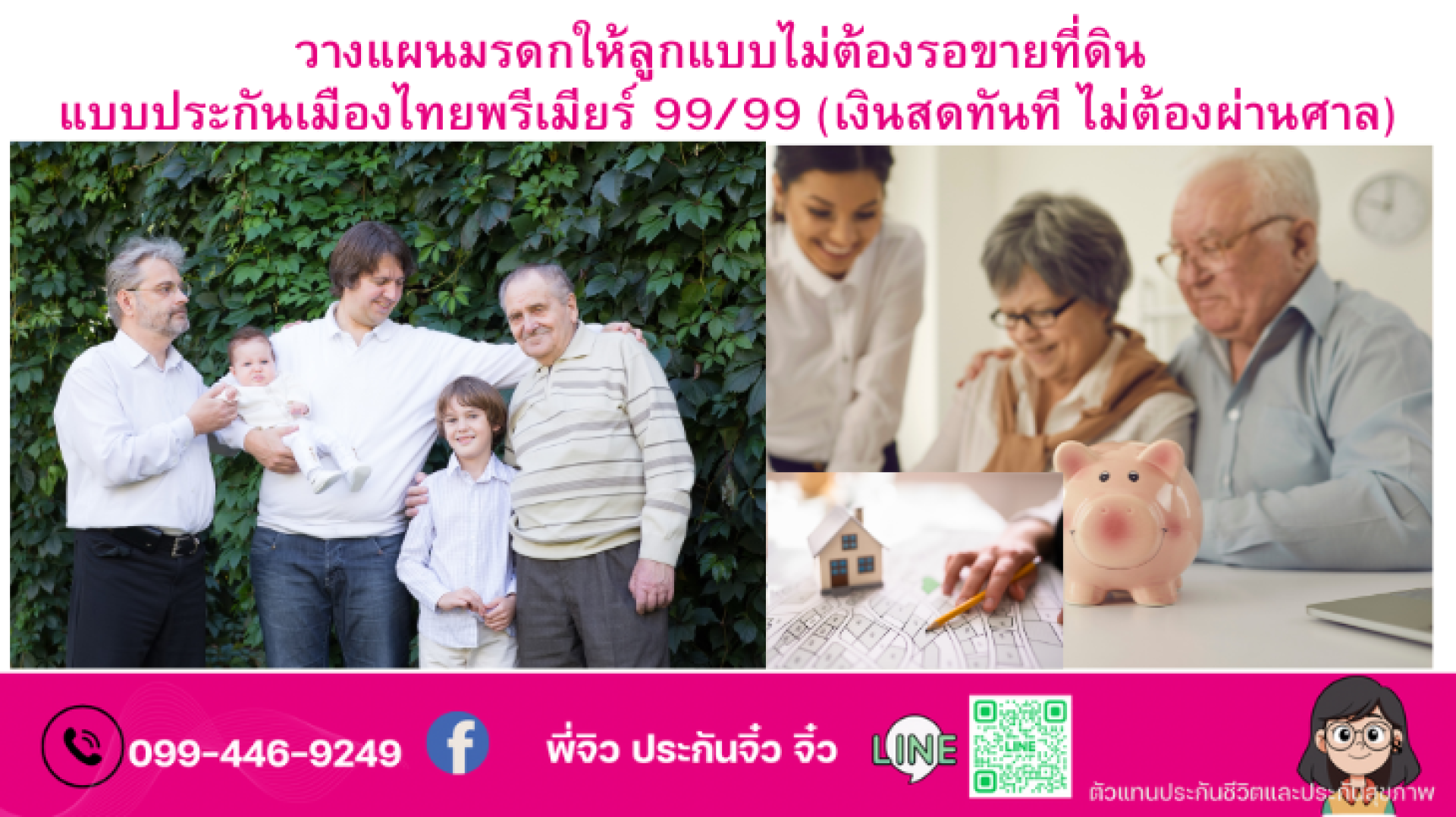 วางแผนมรดกให้ลูกแบบไม่ต้องรอขายที่ดิน ด้วยแบบประกัน เมืองไทย คุ้มครองตลอดชีพ 99/99 (Premier) (เงินสดทันที ไม่ต้องผ่านศาล)